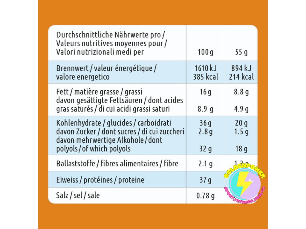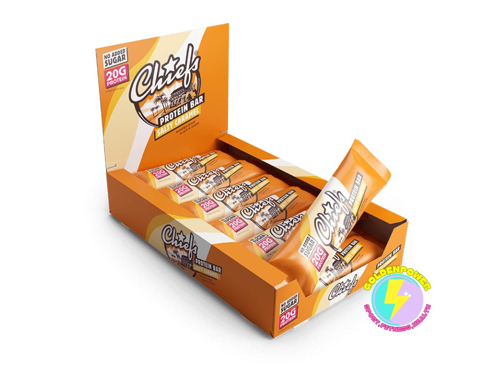Výrobky Chiefs pocházející ze Švýcarska a vyznačují se švýcarskou kvalitou. Jsou křupavé na povrchu, měkké uvnitř, obalené v té nejlepší čokoládě - exploze chuťových pohárků je zaručena. To ale není všechno. Tato hříšně chutnající tyčinka obsahuje neuvěřitelných 20 gramů bílkovin a neobsahuje žádný přidaný cukr a dalších plno prospěšných látek.