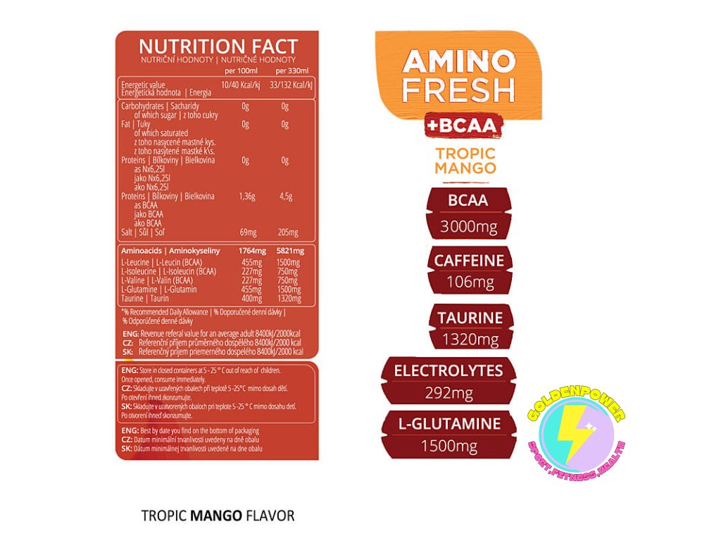 Nápoj je zdrojem aminokyselin BCAA a proteinů. Obsahuje kofein a Taurin, který je důležitou složkou energetických nápojů. Neobsahuje cukry ani tuky. BCAA aminokyseliny patří ke stavebním částicím bílkovin, které přispívají k růstu a udržení svalové hmoty.